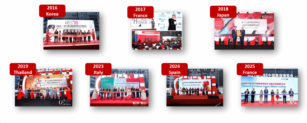 As an increasing number of international brands enter the China market and even Asia markets, more and more countries and regions participate in the annual China Beauty Expo. In order to narrow the distance between China cosmetics industry and the rest of the world, the China Beauty Expo team has chosen a mature country in the field of cosmetics as the guest of honor every year to conduct in-depth exchanges in their brands, products, technologies, markets, and channels.