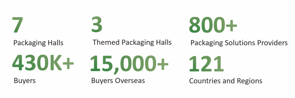 • 7 dedicated packaging halls showcasing 10 major product categories, from advanced materials to finished components.